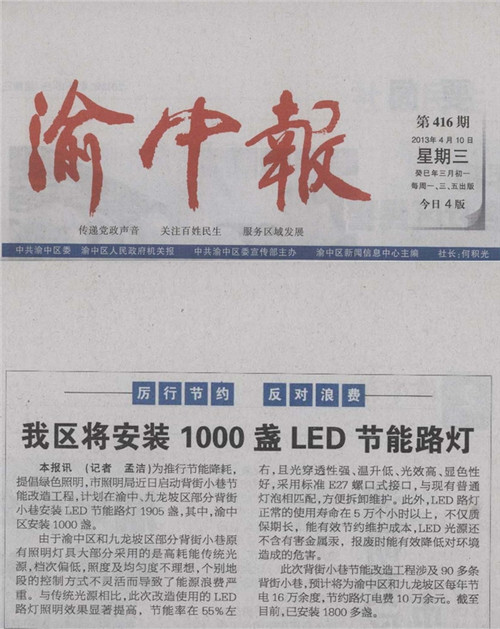 重慶市九龍坡區(qū)九龍花園背街小巷“‘十惠牌’背街小巷一體化拆裝方便的LED專用節(jié)能路燈”改造項(xiàng)目